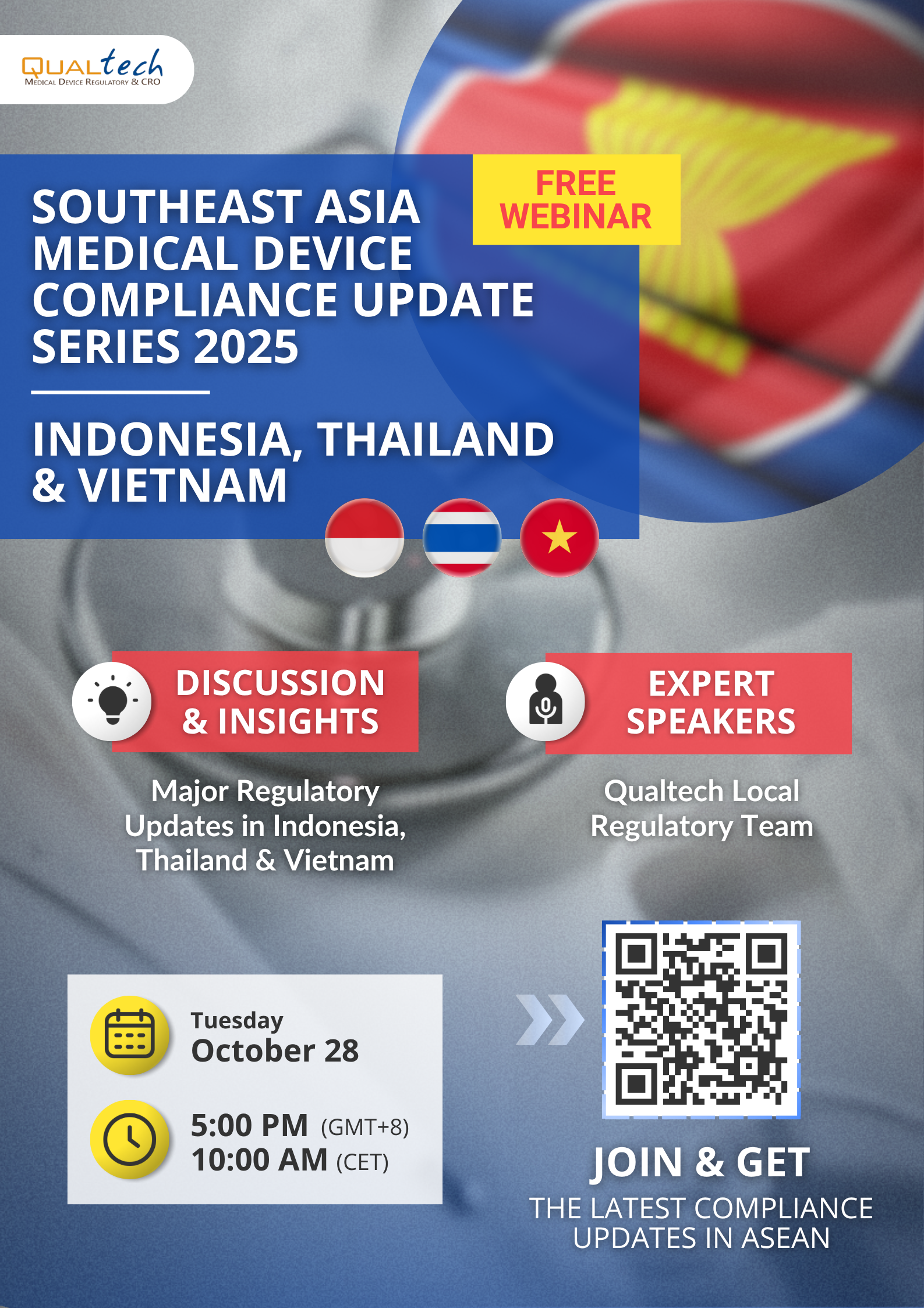 Qualtech is delighted to invite you to our October webinar, Southeast Asia Medical Device Compliance Update Series 2025: Indonesia, Thailand & Vietnam, taking place on Tuesday, October 28, 2025.